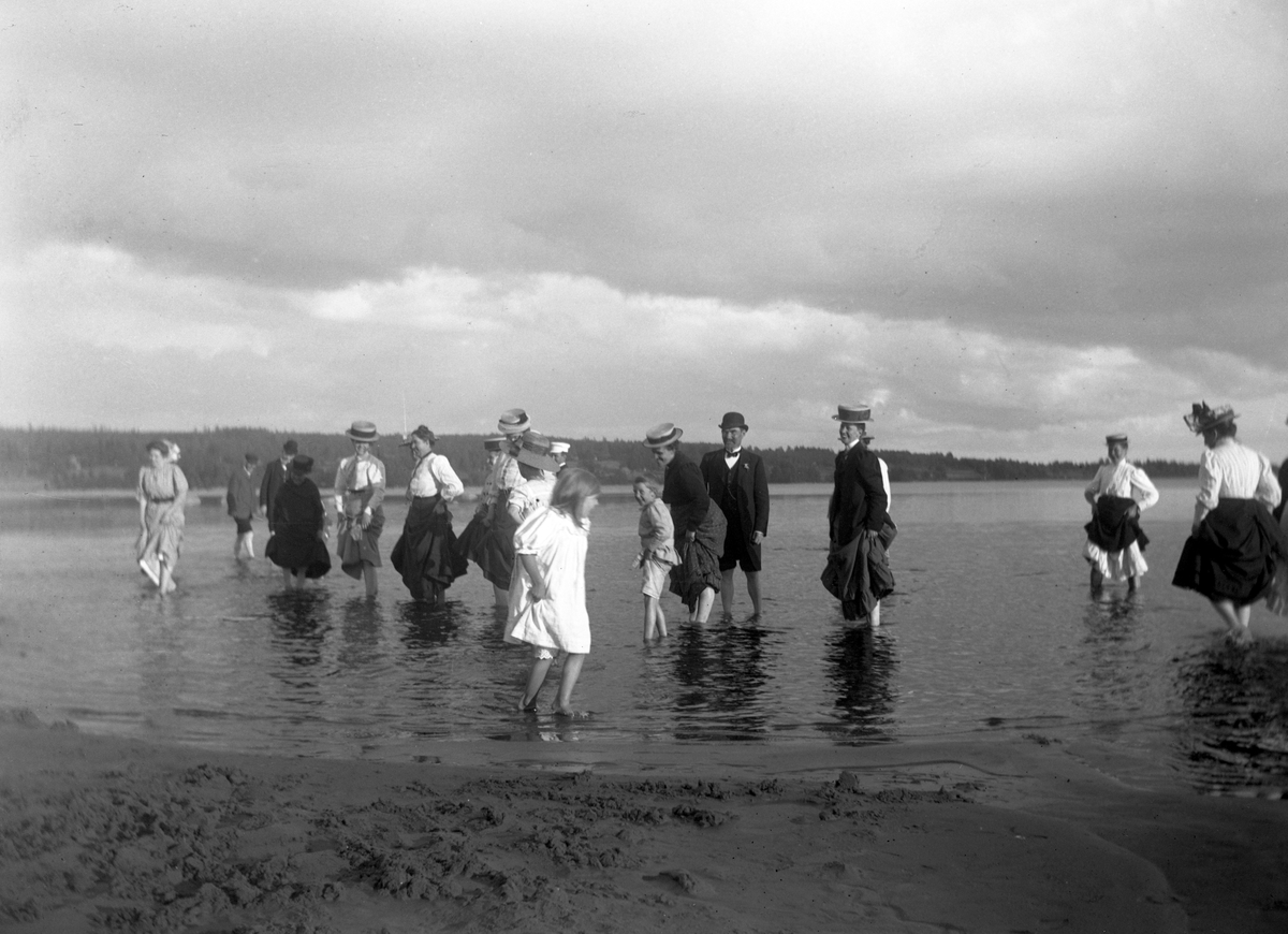 Årets första fotbad på en bild som har ett hundratal år på nacken.