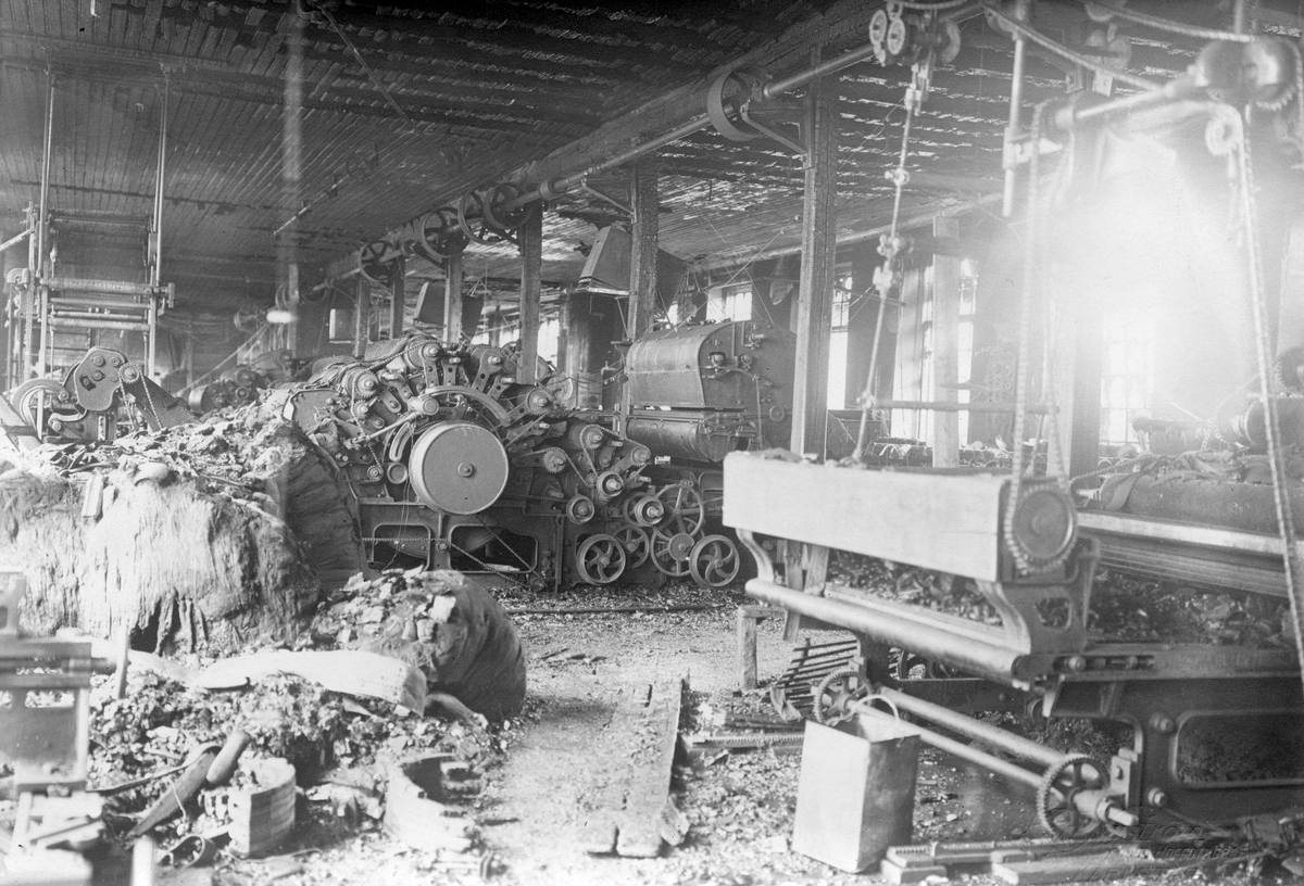 En serie bilder med anknytning till Karlstads Brandkår. Karlstads Spinneri- och Väfveris fabrik på Älvgatan brinner den 27 april 1920.