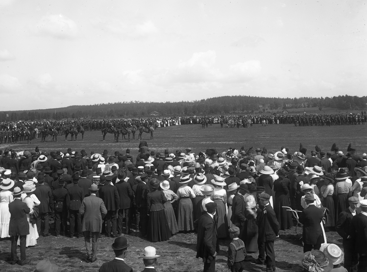 Militäruppvisning till häst vid Trossnäs runt 1905.