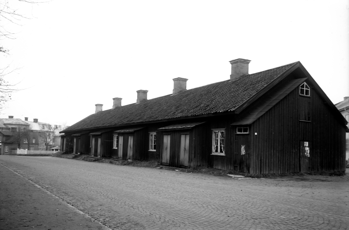 Den i folkmun kallade "liggande skyskrapan", den sista kvarstående nödbostaden byggd efter branden 1865, inför rivning i november 1932.