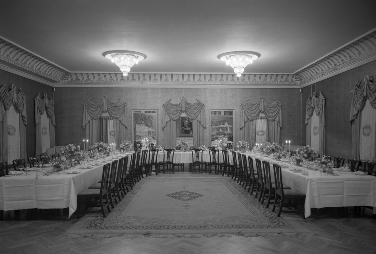 Statts festvåning dukad för måltid i samband med restauratörernas årsmöte år 1937.