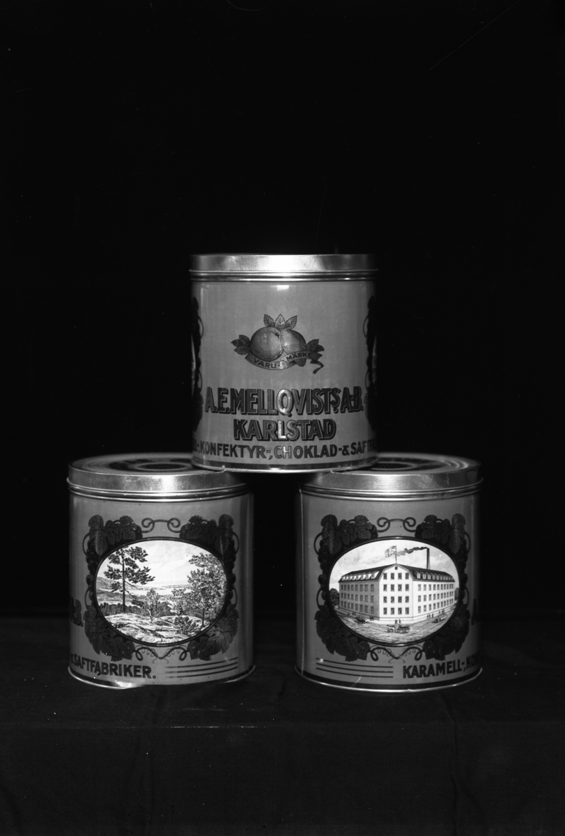 Reklamfoto för A E Mellqvists sylt-, saft- och karamellfabrik taget 1925.
