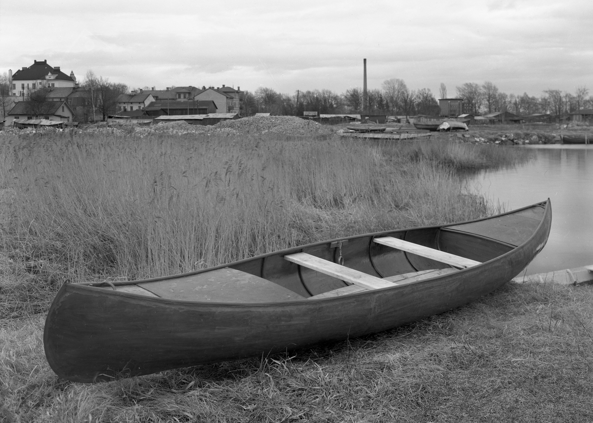 Kanot tillverkad av C J Wennbergs i Viken. I bakgrunden syns hus i kvarteret Rosenbad. Bilden togs under första delen av 1940-talet