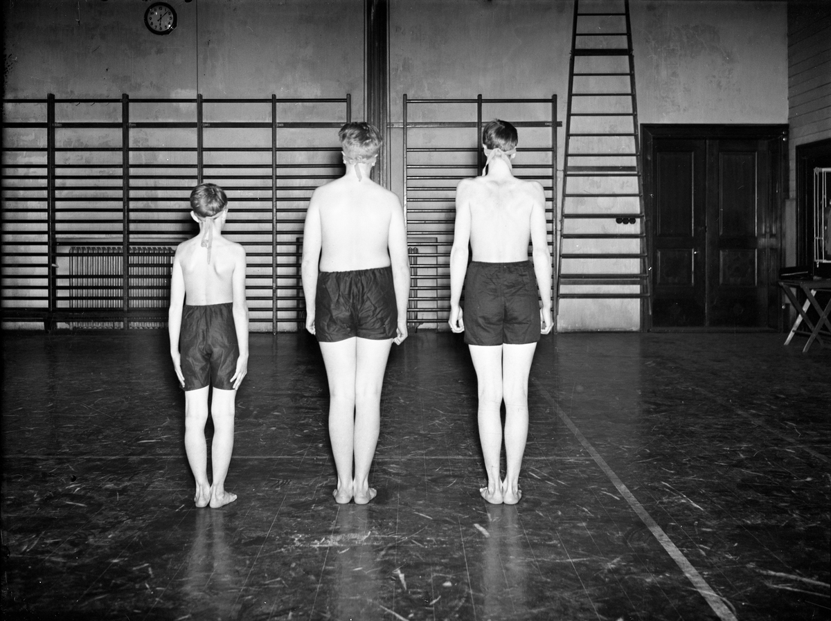 Text på negativkuvertet: Hållningsgymnastik, bilden från 1942.