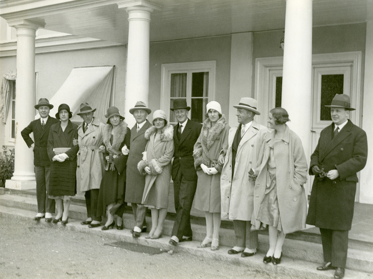 När den lettiske ministern besökte Mårbacka och dekorerade Selma Lagerlöf med "Tre Stjärnors orden" besöktes även Rottneros där denna bild togs. Bland annat står hembygdsforskaren Linus Brodin som nummer 3 från vänster och de kända Karlstadsborna Åke och Greta Nerman samt stadshotellets ägare Henry Odén på platserna 7-9. Bilden togs den 5 september 1929.
