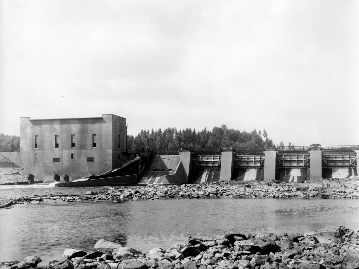Kraftverk i Klarälvdalen från norr till söder. En gåva till museet från Ingela Thorsell, Karlstad. Skymnäs kraftstation 1939.