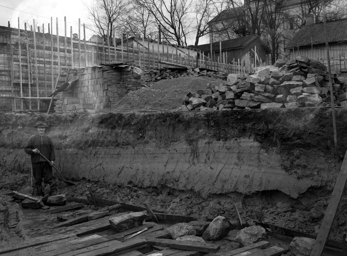 Grundläggningsarbeten inför nybygge på Norra Strandgatan 7 år 1938.