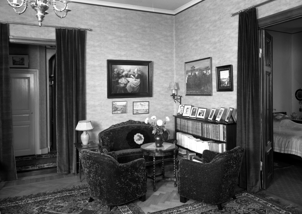 Interiör från Karl Adolf Falks våning i Bergqvisthuset vid torget i mitten på 1940-talet.