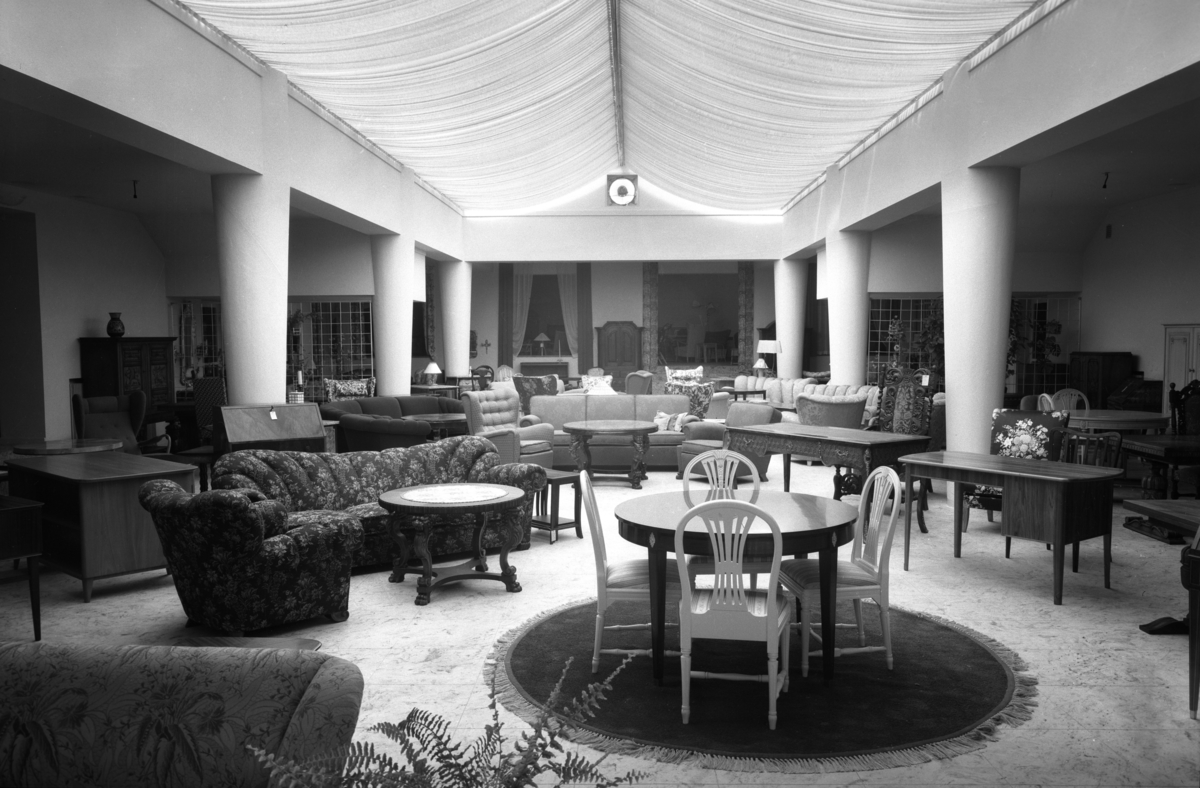 Ett smakprov på sortimentet i Klaessons möbelaffär på adressen Drottninggatan 10 år 1945.