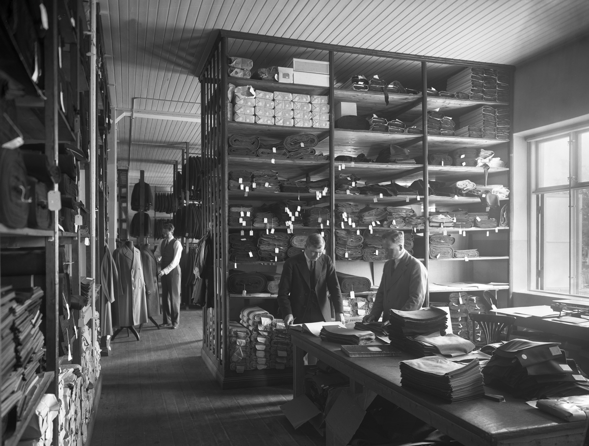 Interiör från Bergsons textilindustri på Herrhagsgatan i Karlstad. Bilden tagen runt 1930.