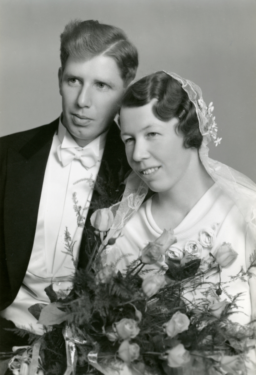 En bildserie med exempel på Dan Gunners arbete som bröllopsfotograf. Bilderna togs mellan 1925 och 1950. Brudparet Erik Lindbärg.