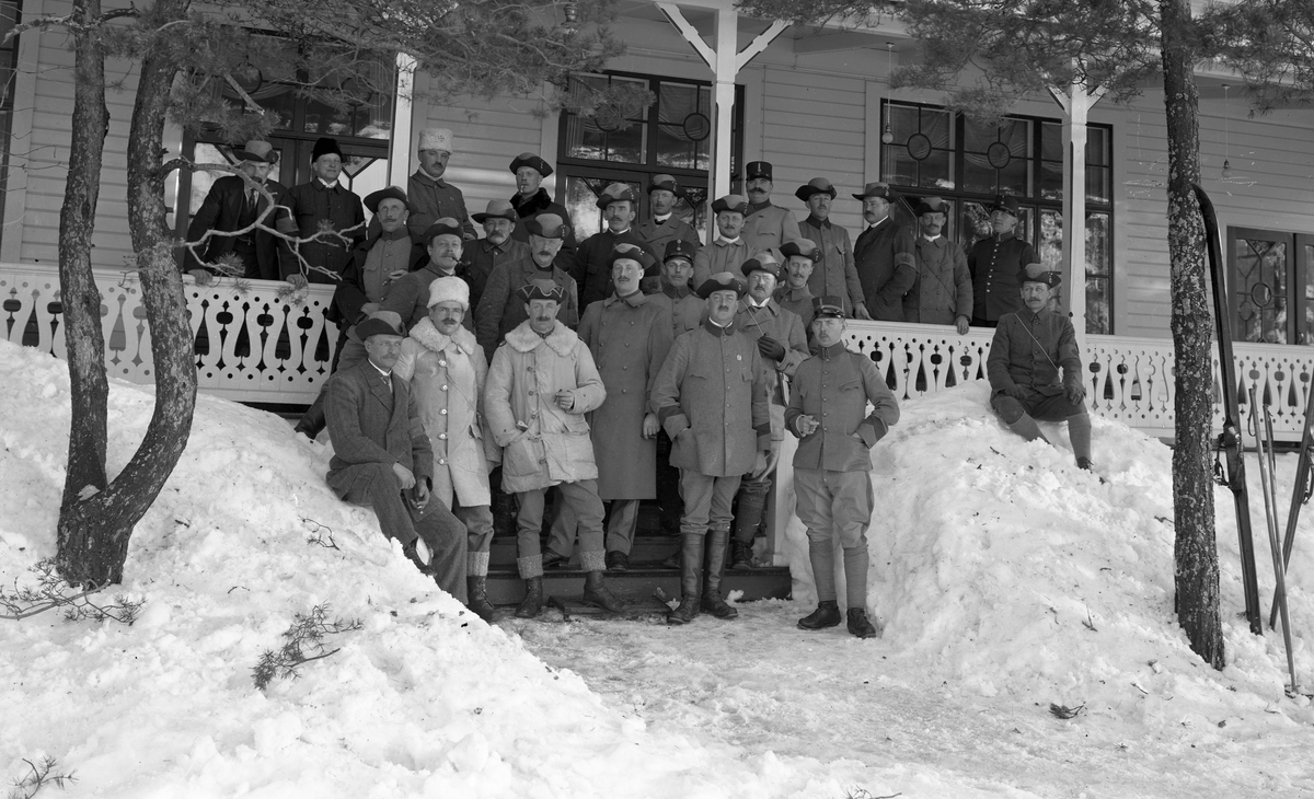 Landstormsmän utanför restaurangen på Tynäs.