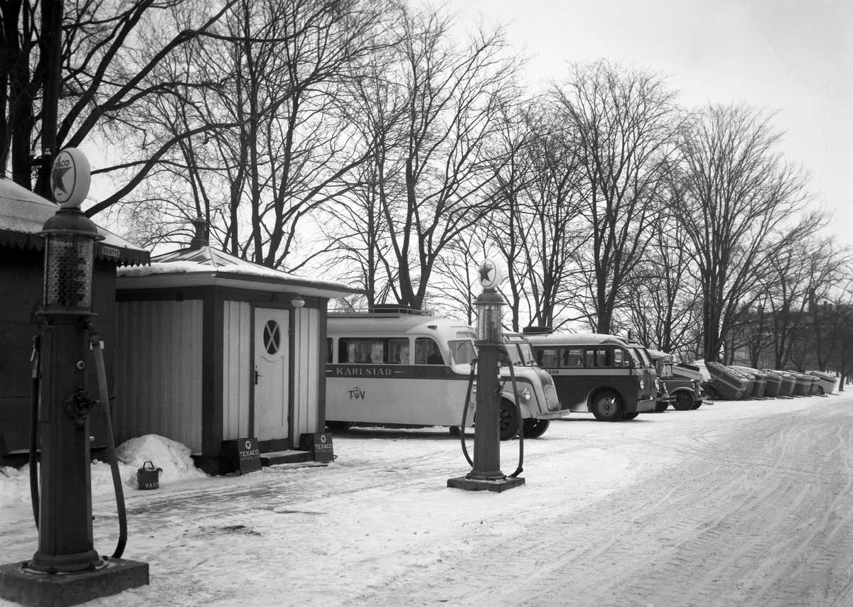 Karlstads Omnibusscentral vid Norra Strandgatan på en bild från 1937.