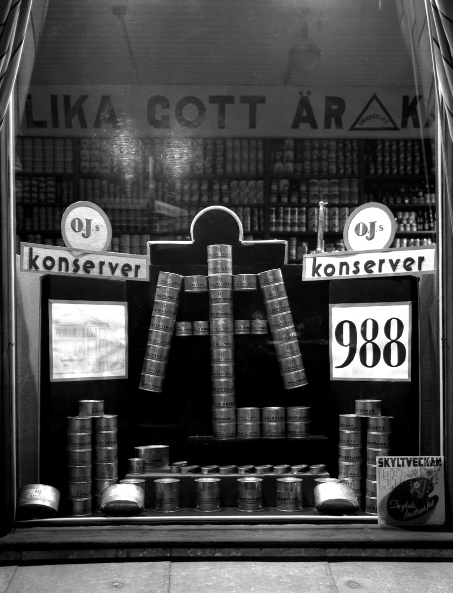 Klara hushållshandel låg i "Klara 1", den tidigare fastigheten i hörnet Våxnäsgatan- Sandbäcksgatan. Bilden från 1935.