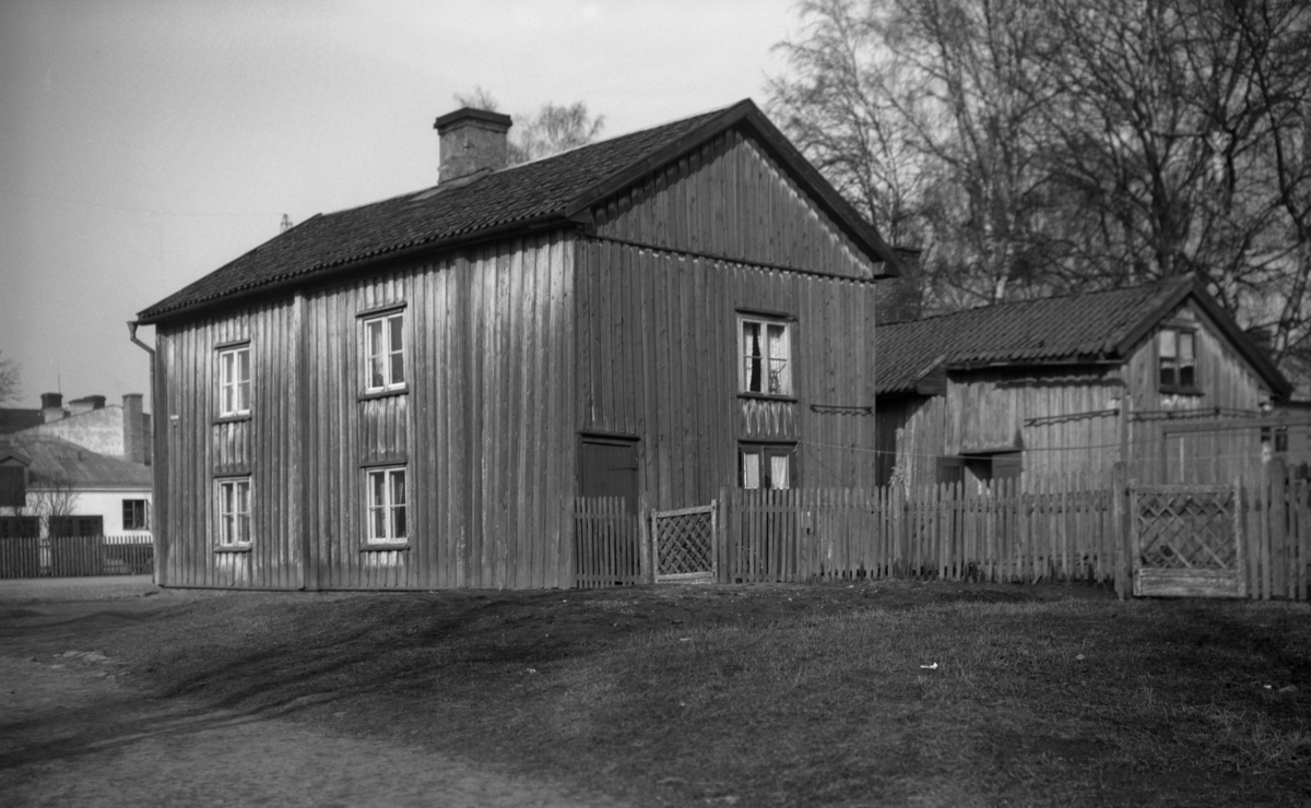 Tidstypisk utkantsbebyggelse i Karlstad från tiden före branden 1865. Bilden tagen 1933.