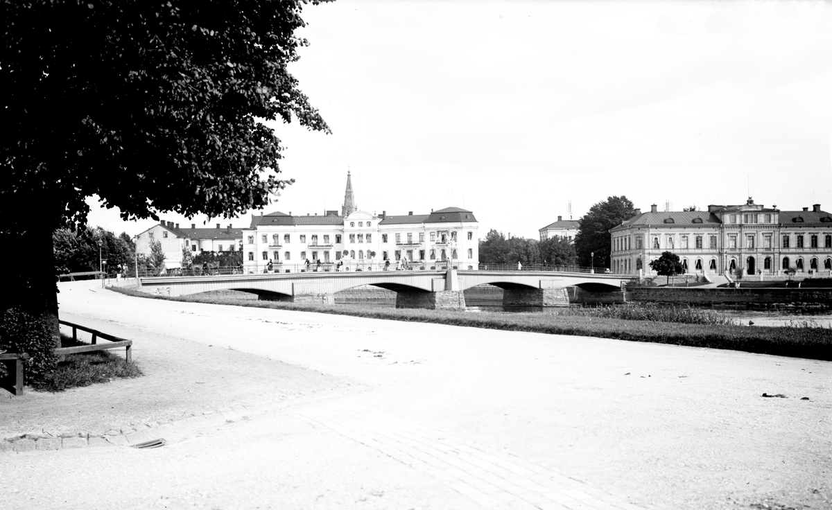 Västra bron med stadshotellet och residenset på en bild från 1920.
