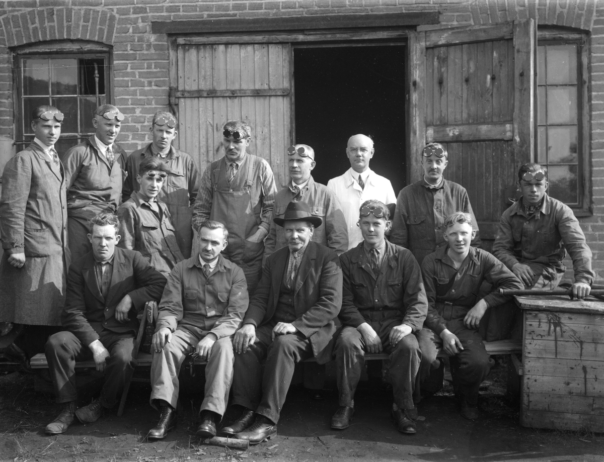 Personalen vid Södergrens konstsmide på adresen Smedjegatan 10 på Herrhagen. Firman tillverkade bl a grindar och staket.