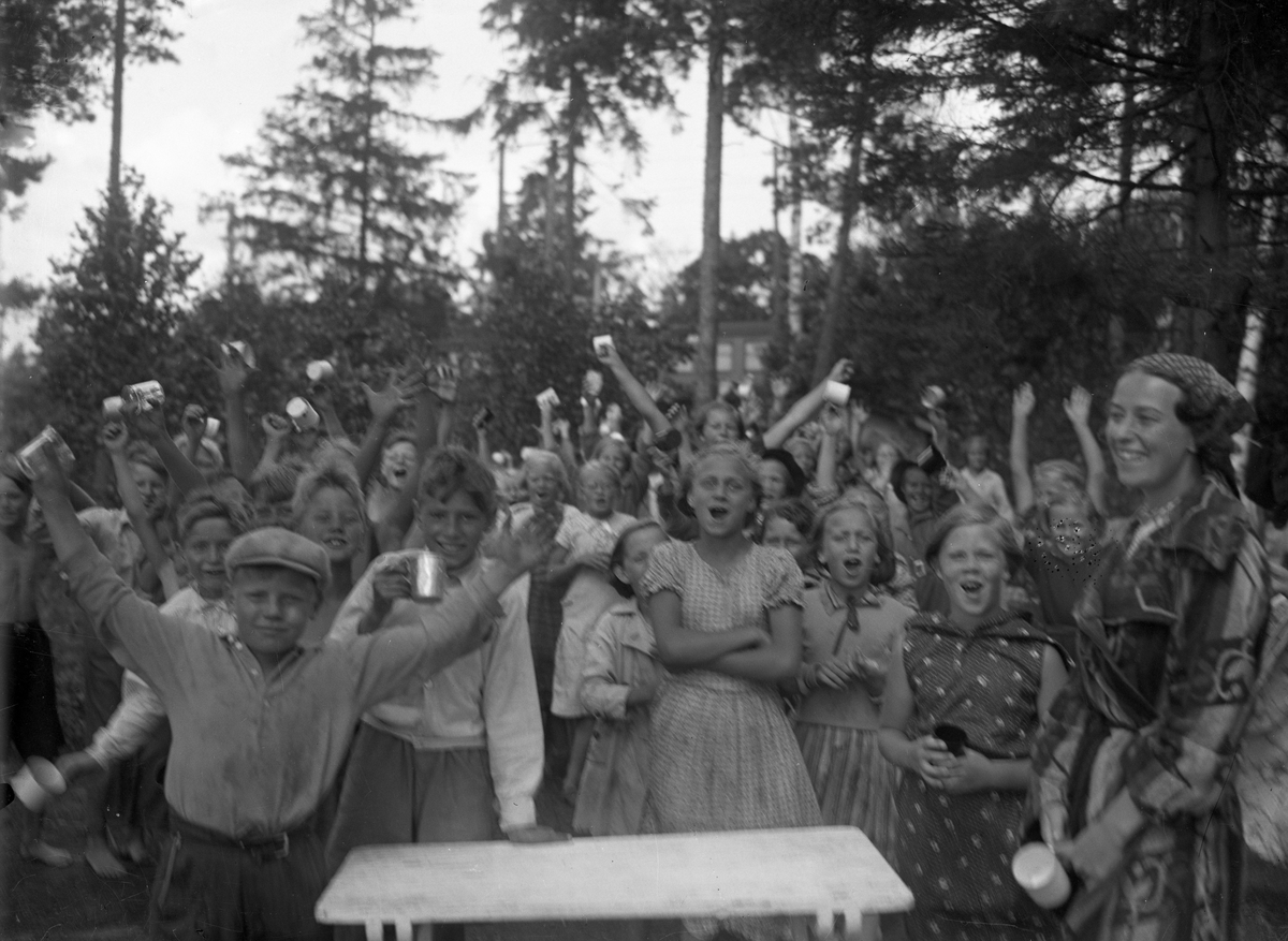 Karlstad stads barnläger vid Alsters strandbad år 1936. Den ursprungliga förlagan till senare tids Bomstads-, Örsholms- och Sundstaläger.