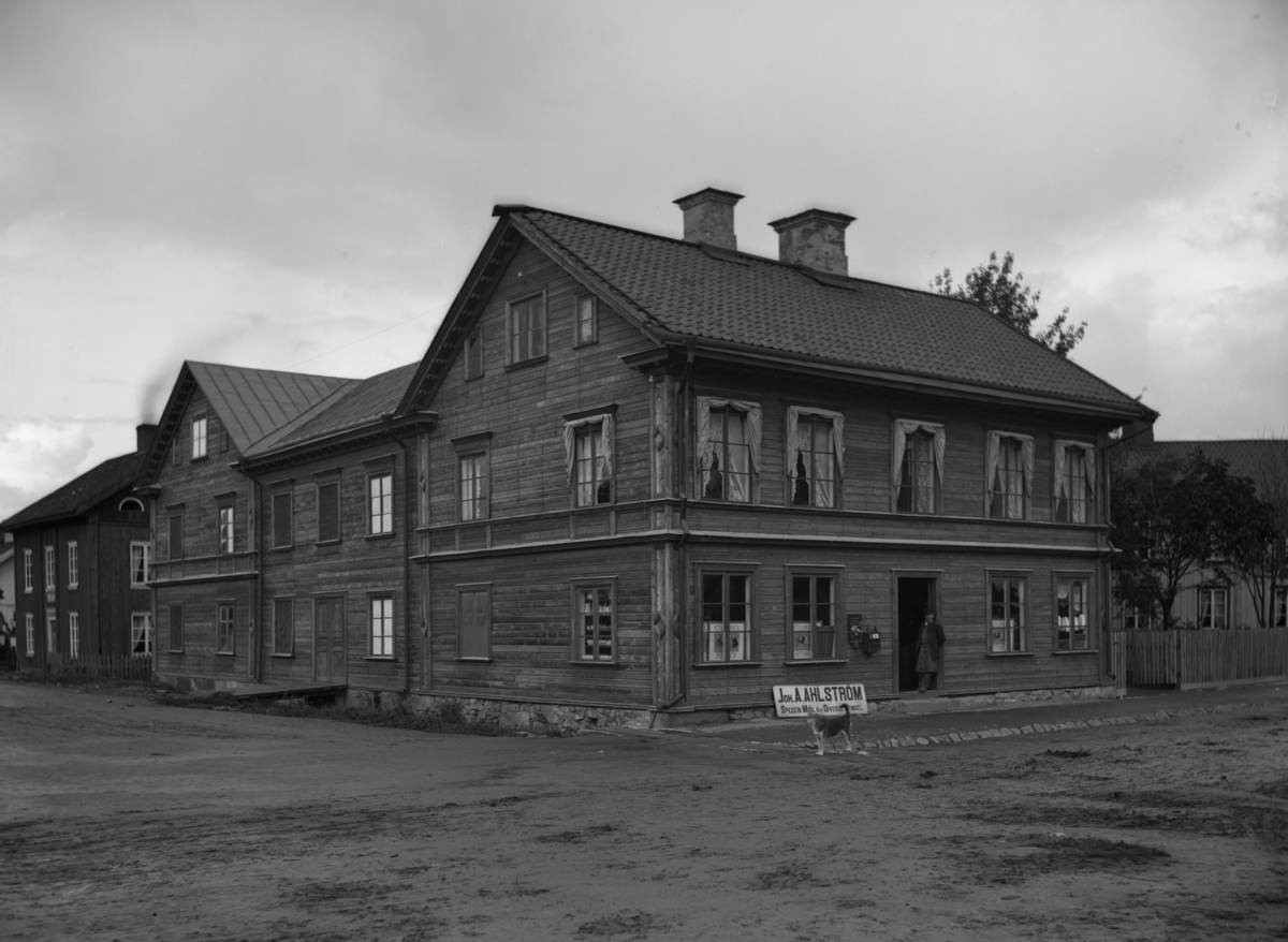 J A Ahlströms diversehandel i hörnet Nygatan-Östra Kanalgatan. Bilden tagen ca år 1890.