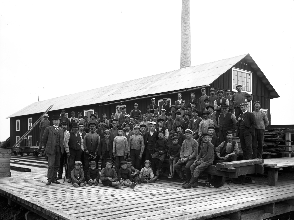 Arbetsstyrka vid Skoghalls sågverk runt 1910.