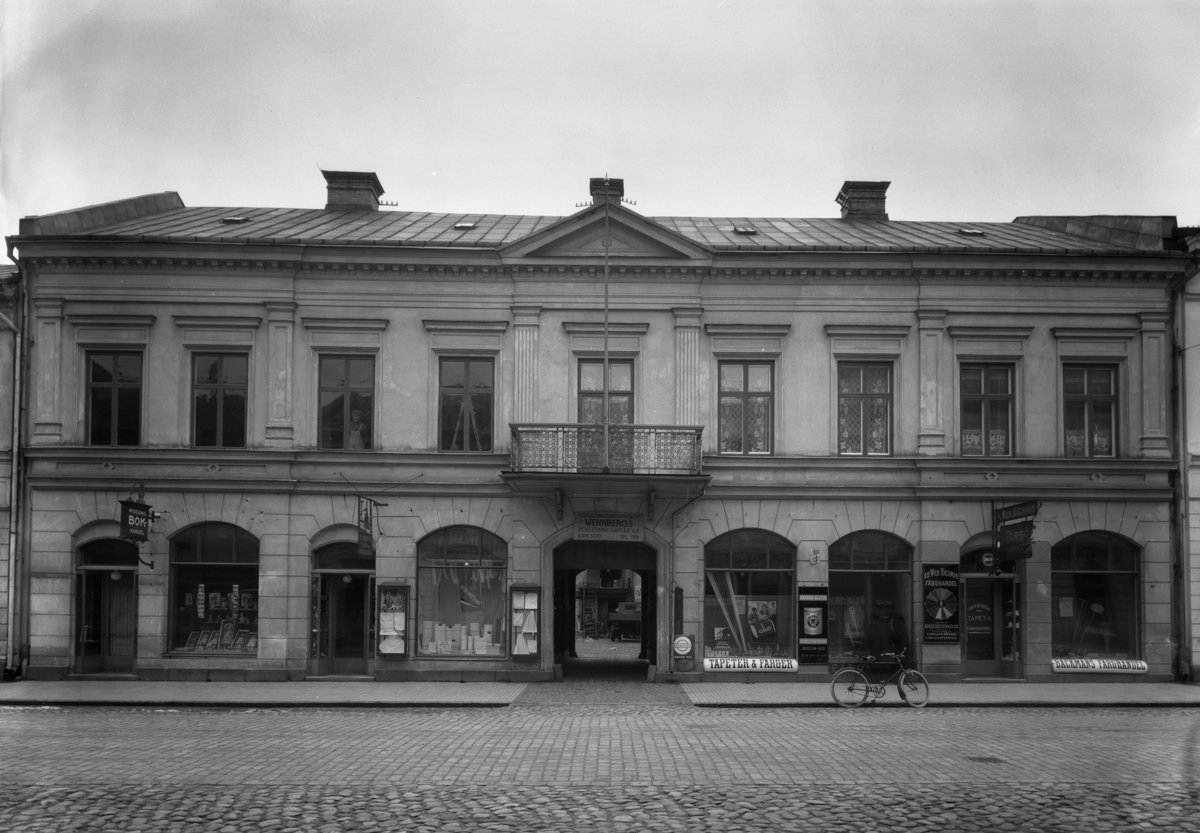 Wilhelm Bäckmans Färghandel på Västra Torggatan 9 i kvarteret Druvan år 1940. Huset byggdes något år efter branden.