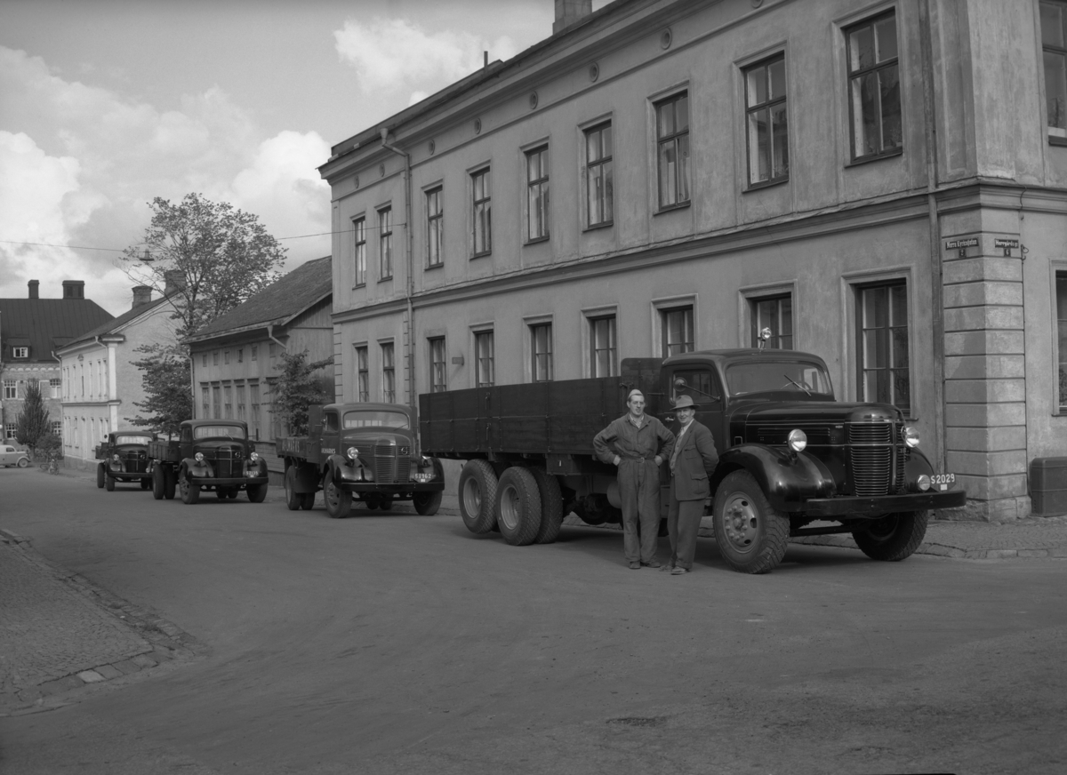 Lastbilsparad på Norra Kyrkogatan år 1950.