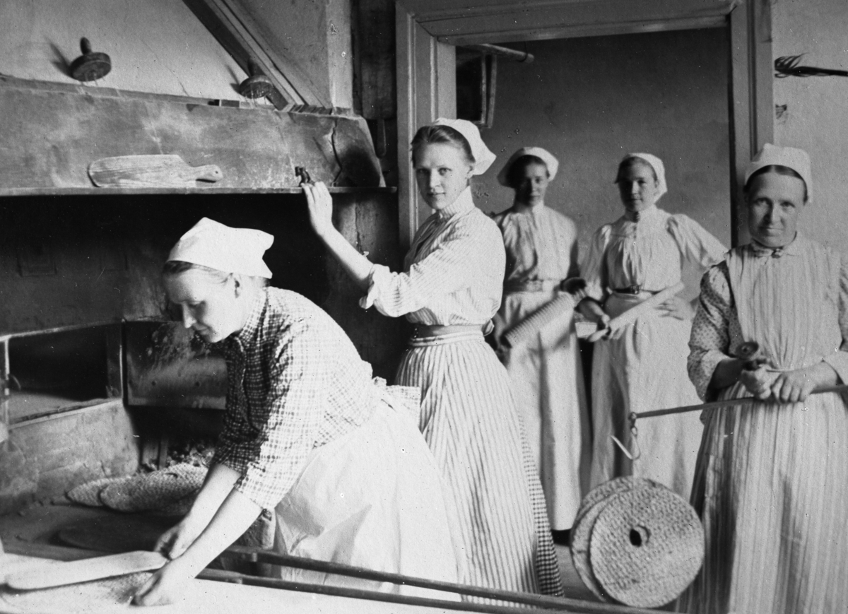 Brödbakande kvinnor på bild tagen runt förra sekelskiftet.