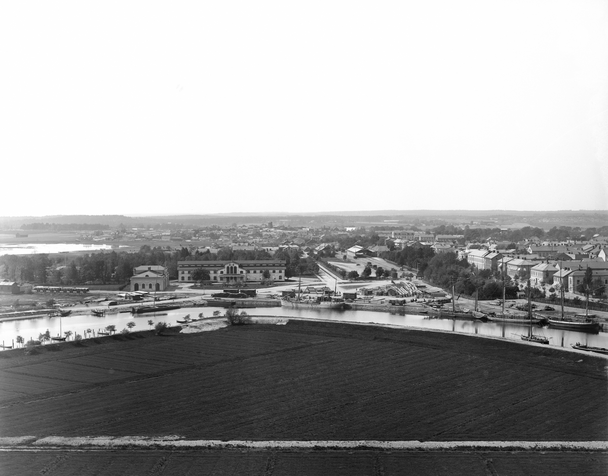 Fotot taget från Herrhagens vattentorn med Kvarnberget i fonden år 1889.