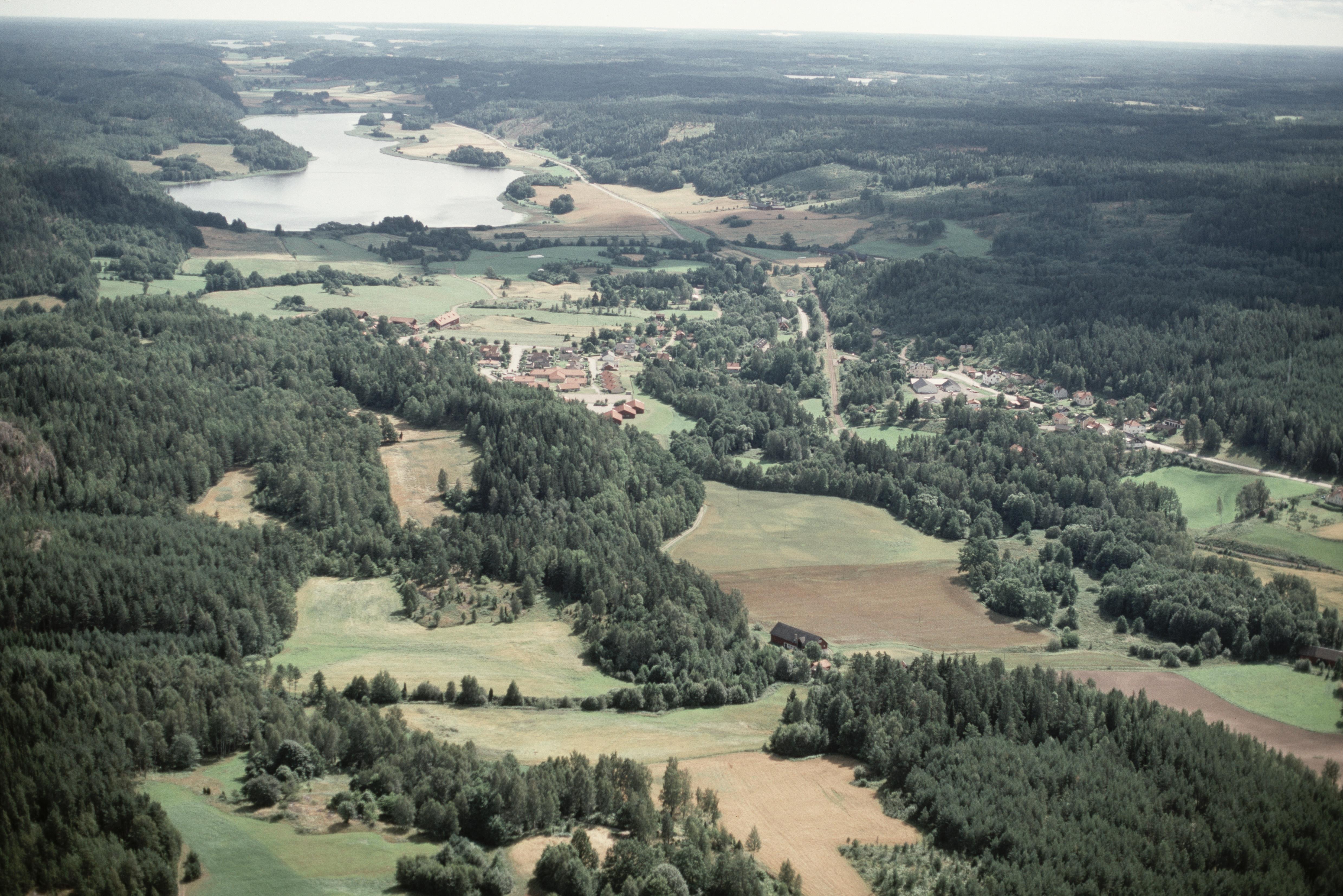 Storån i Uknadalen vid Falerums by. I bildens övre del sjön Åkervristen i Ukna socken. Bilden är tagen mot (väderstreck): SO