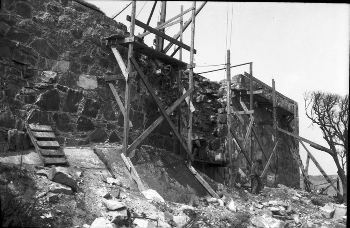 Restaurering av gråstensmur. (Nya Älvsborgs fästning?)