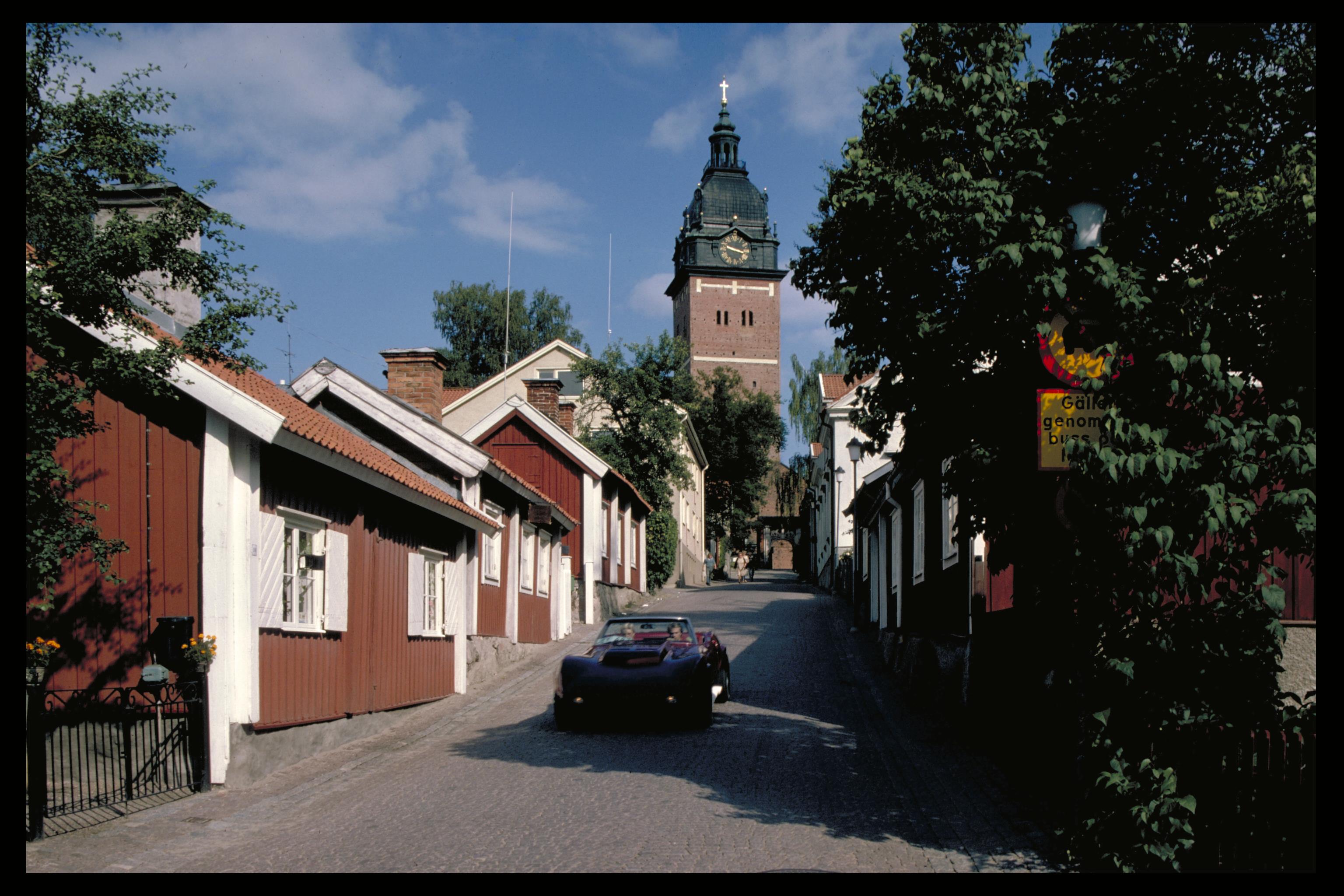 Gyllenhjälmsgatan, Strängnäs domkyrka i bakgrunden. Bilden troligen från slutet av 1970-talet.