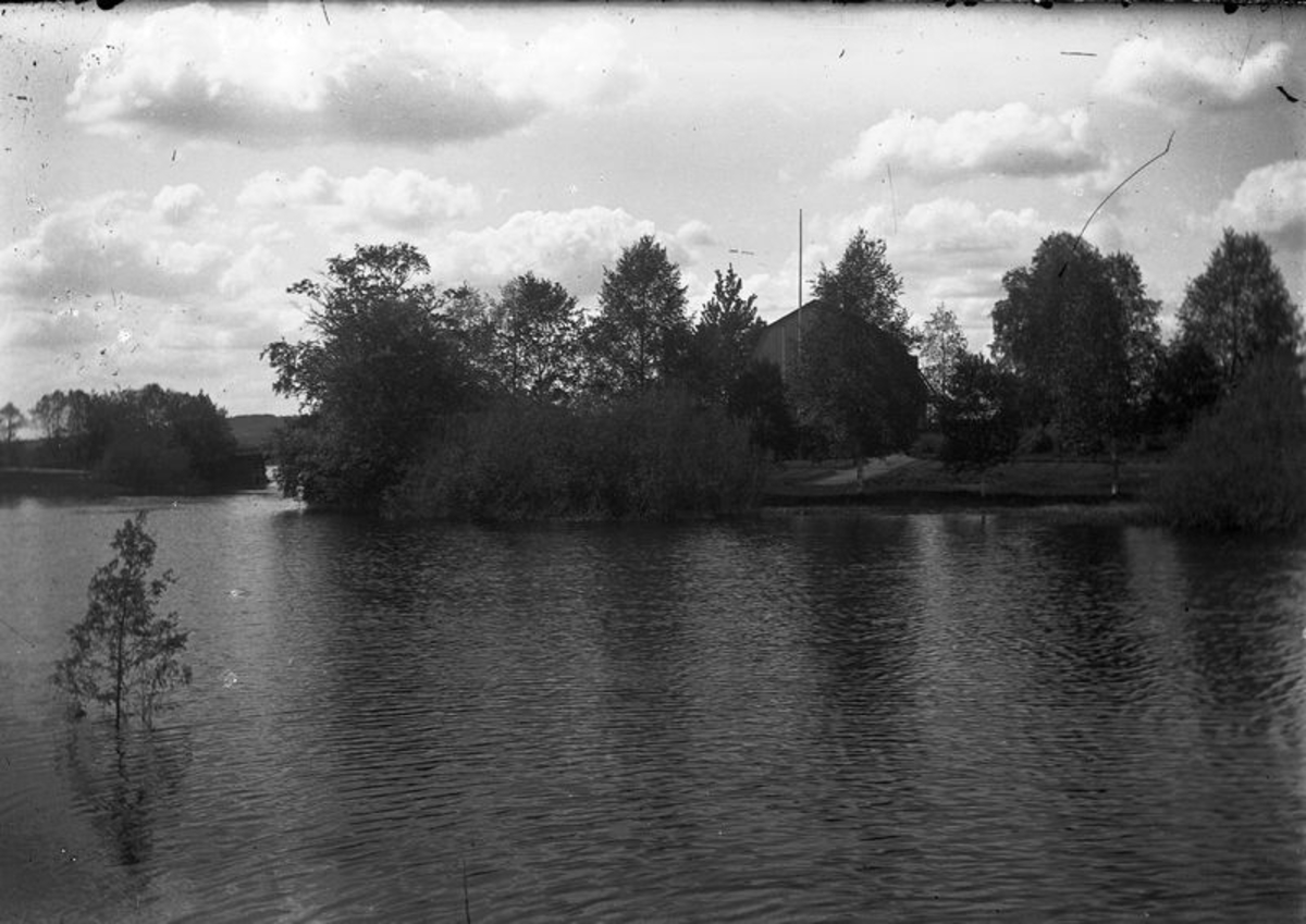 Sjö lövträd och husgavel