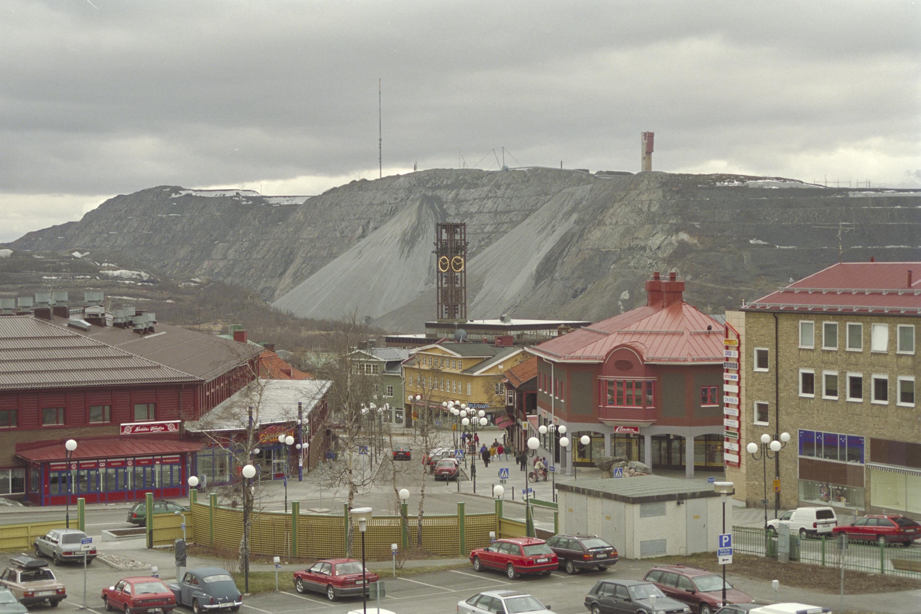 I bakgrunden Kiirunavaara och sjön Luossajärvi.