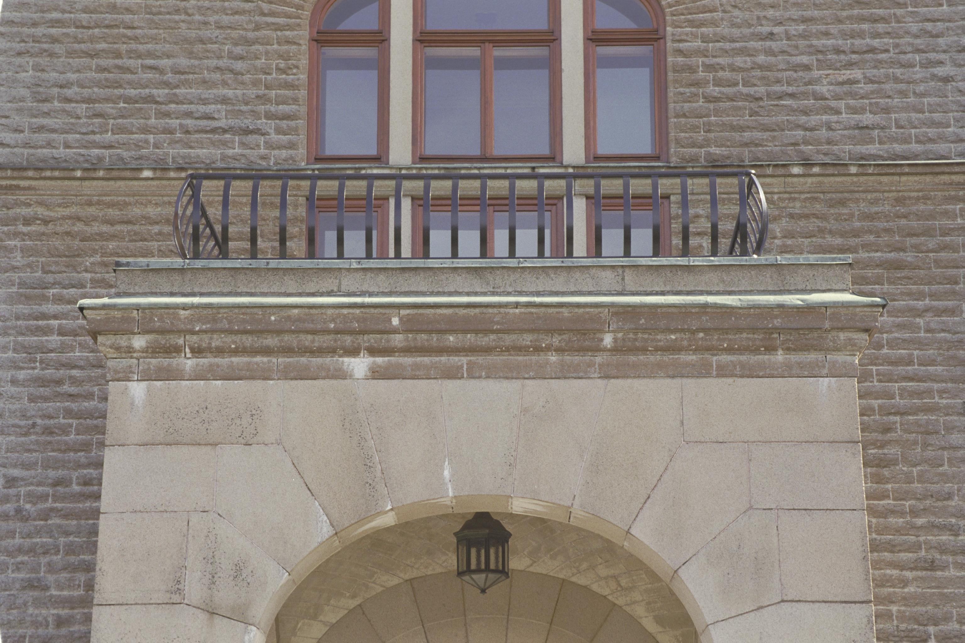 Slottets norra fasad, huvudfasaden. Portikens övre del, balkongen