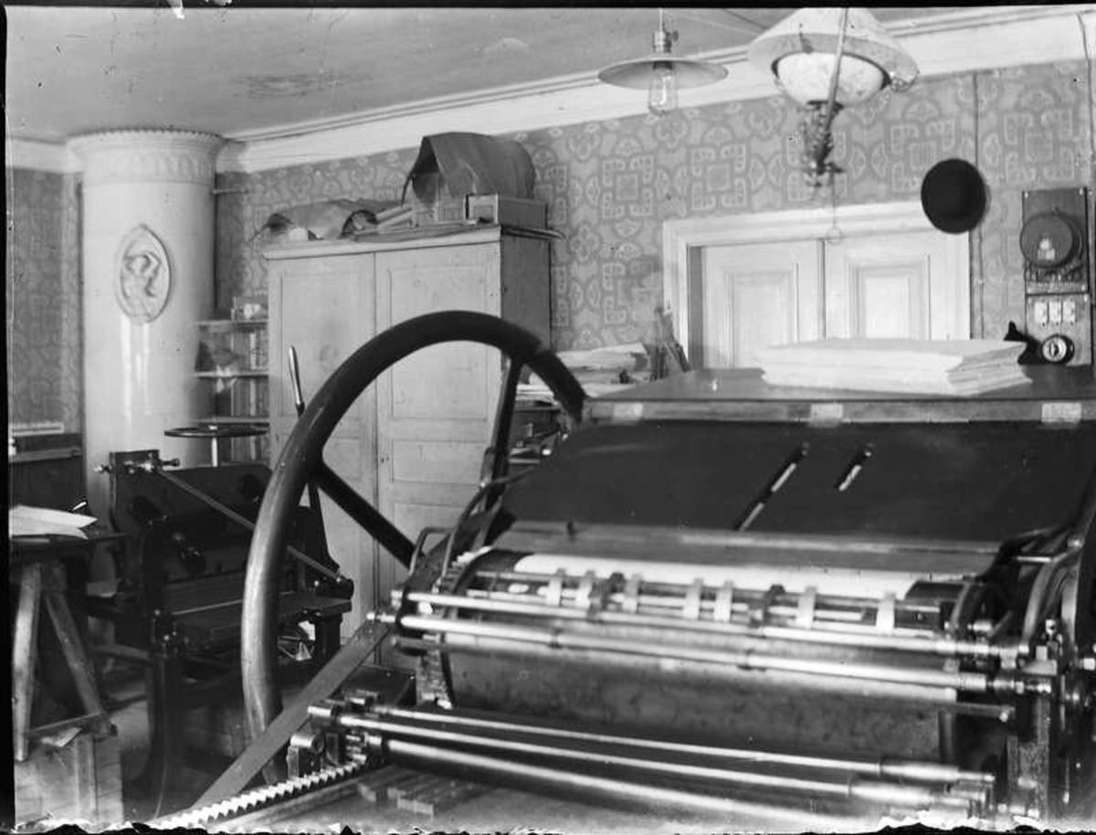 Utrustning för boktryckning på Bergs tryckeri, troligtvis på Drottninggatan 30 i Vänersborg.