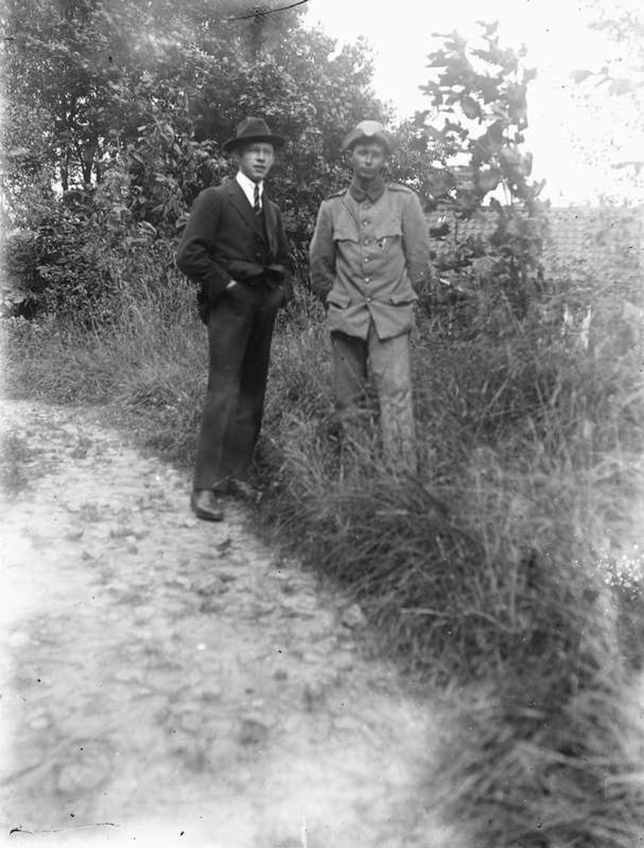 2 herrar, varav en i militäruniform.