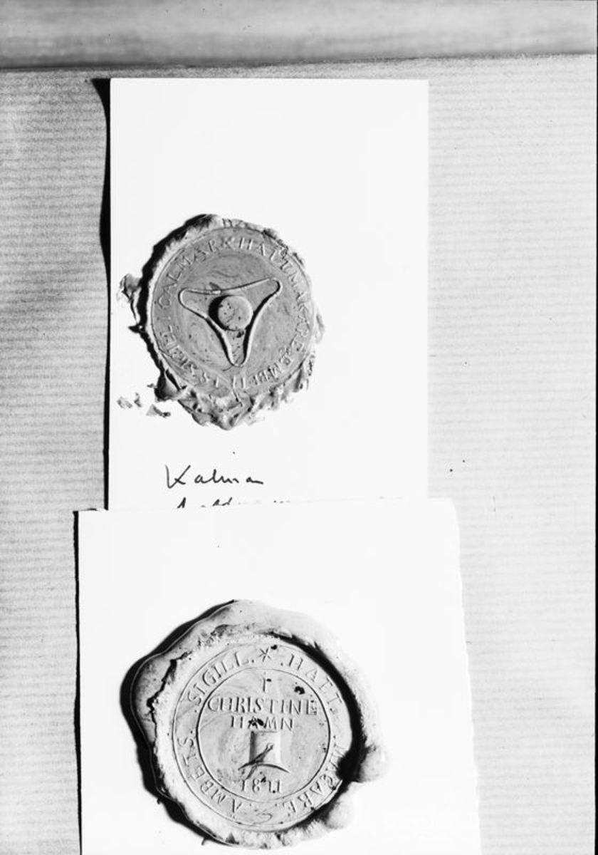 Sigill: Kristinehamn och Kalmar hattmakareämbete.