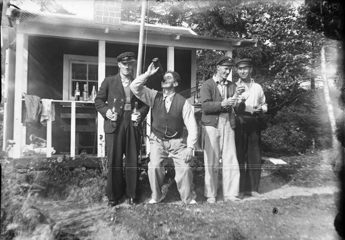 Fyra herrar med flaskor.