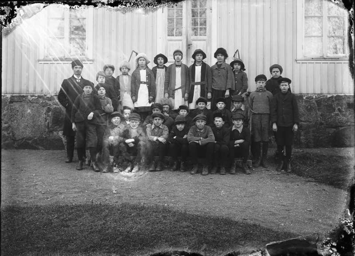 Skolbarn uppställda till fotografering.