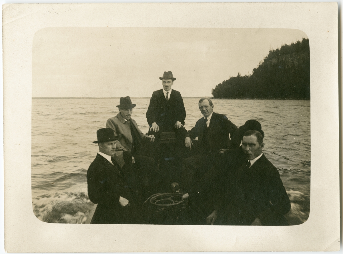 Gruppbild i båt. Eventuellt vid Nordkroken.