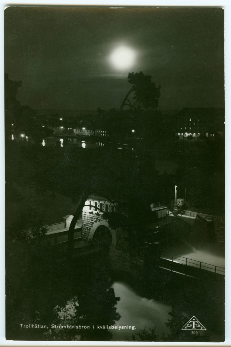 Trollhättan Strömkarlsbron i kvällsbelysning