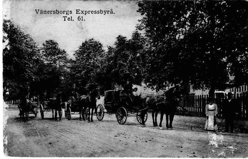 Vänersborgs Expressbyrå, 4 hästdragna fordon, familjen Näslund t h