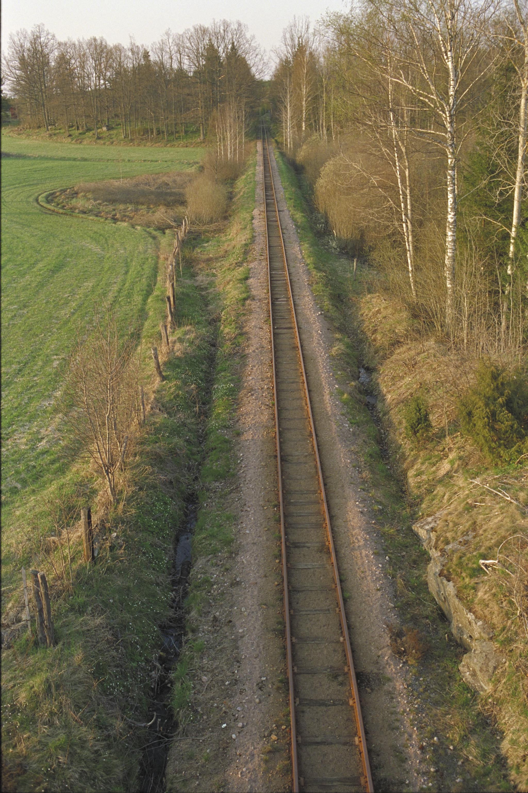 Järnvägssträckan vid Fårhult . Smalspåret från en viadukt.