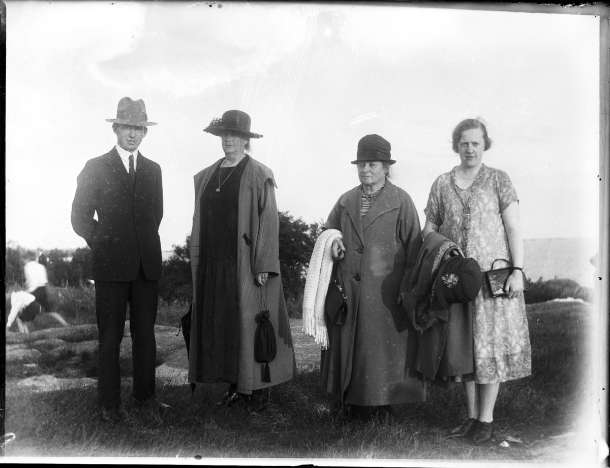 Sommarbild på Östra holmen: Olof, Tant Frida, Mamma o. Bojan.