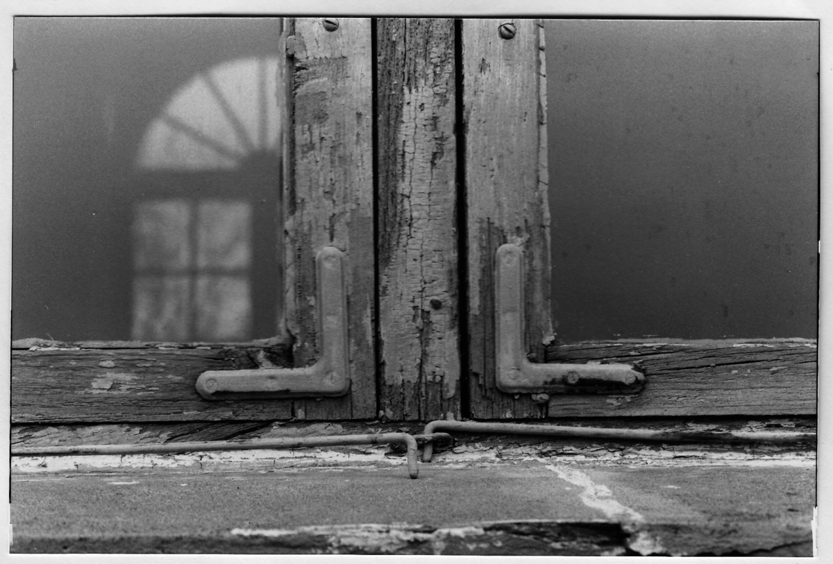 Skölvene sn , Skölvene kyrka. Fönsterdetaljer: uttjärnt kittning , måleri och skadad solbänk 1988-05-03