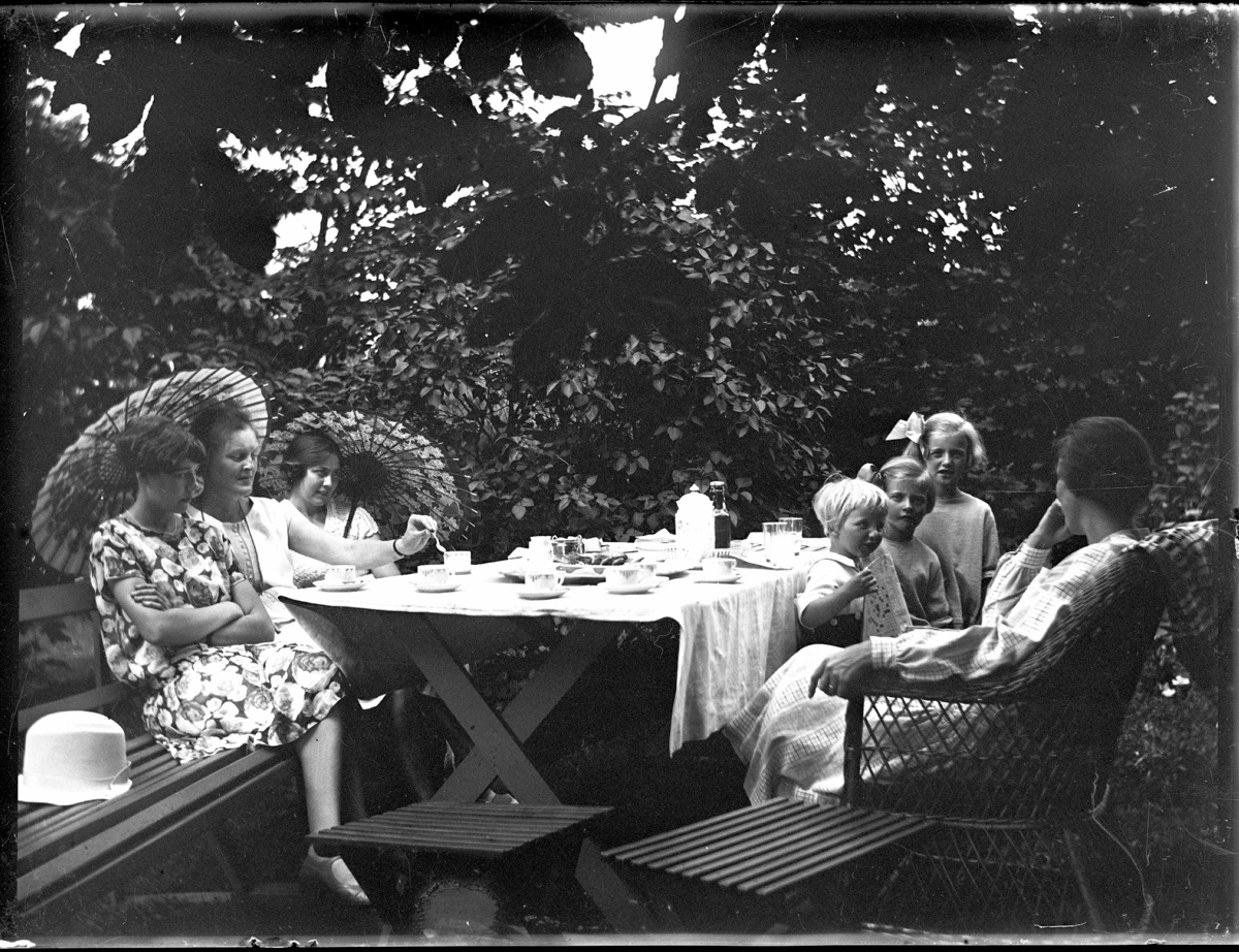 Kring ett kaffebord i det gröna. Lerum? Daretorp? Tidaholm? Var?