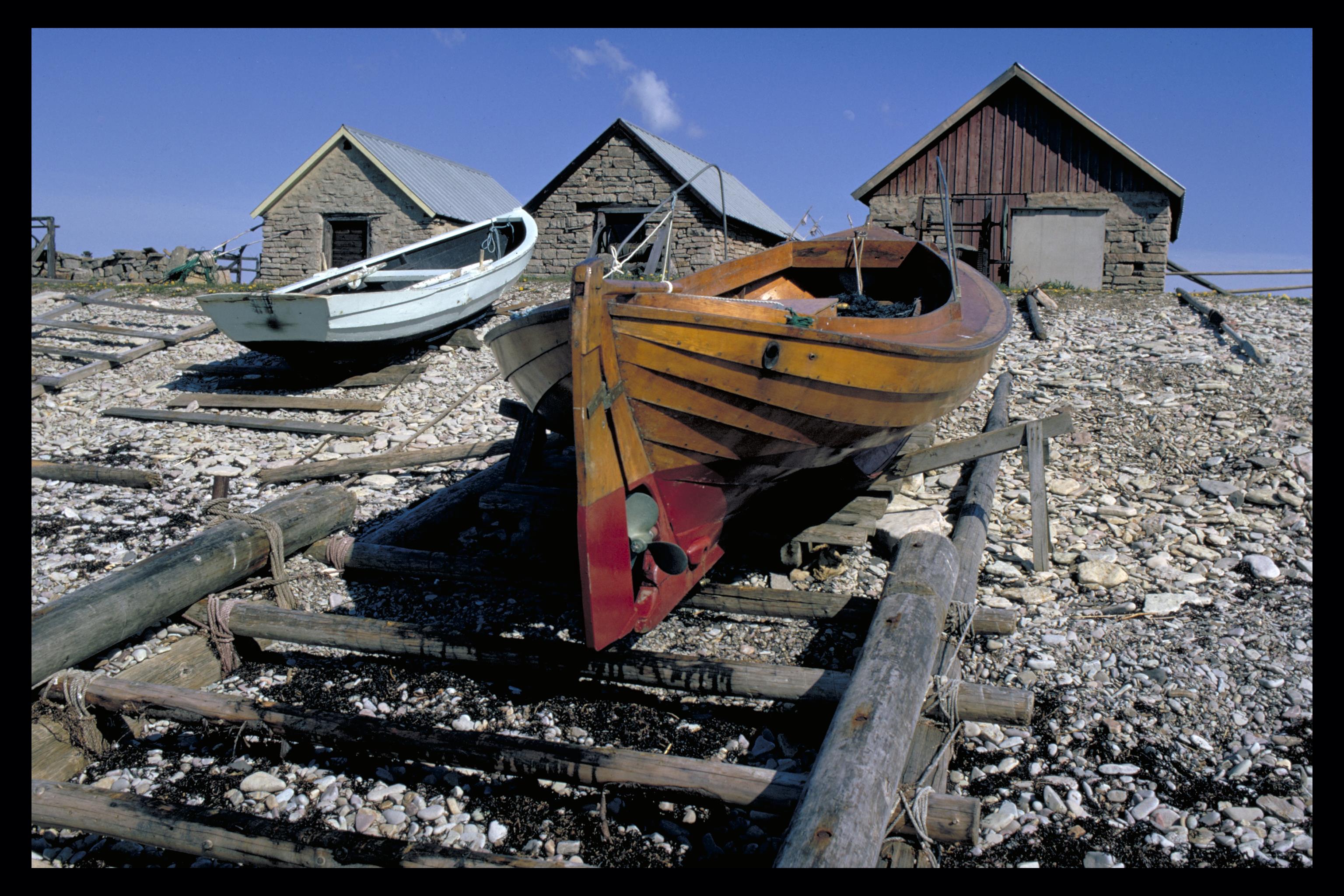 Båtar och fiskebodar. Även plats för tidigare kalkframställning.