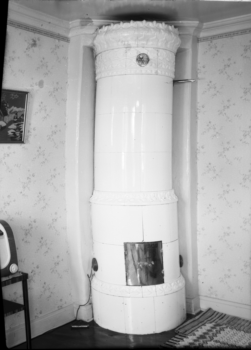 Järnkamin. b Kamin med kakelugn. c-g Kakelugn. Alltorps tingshus Ödskölt