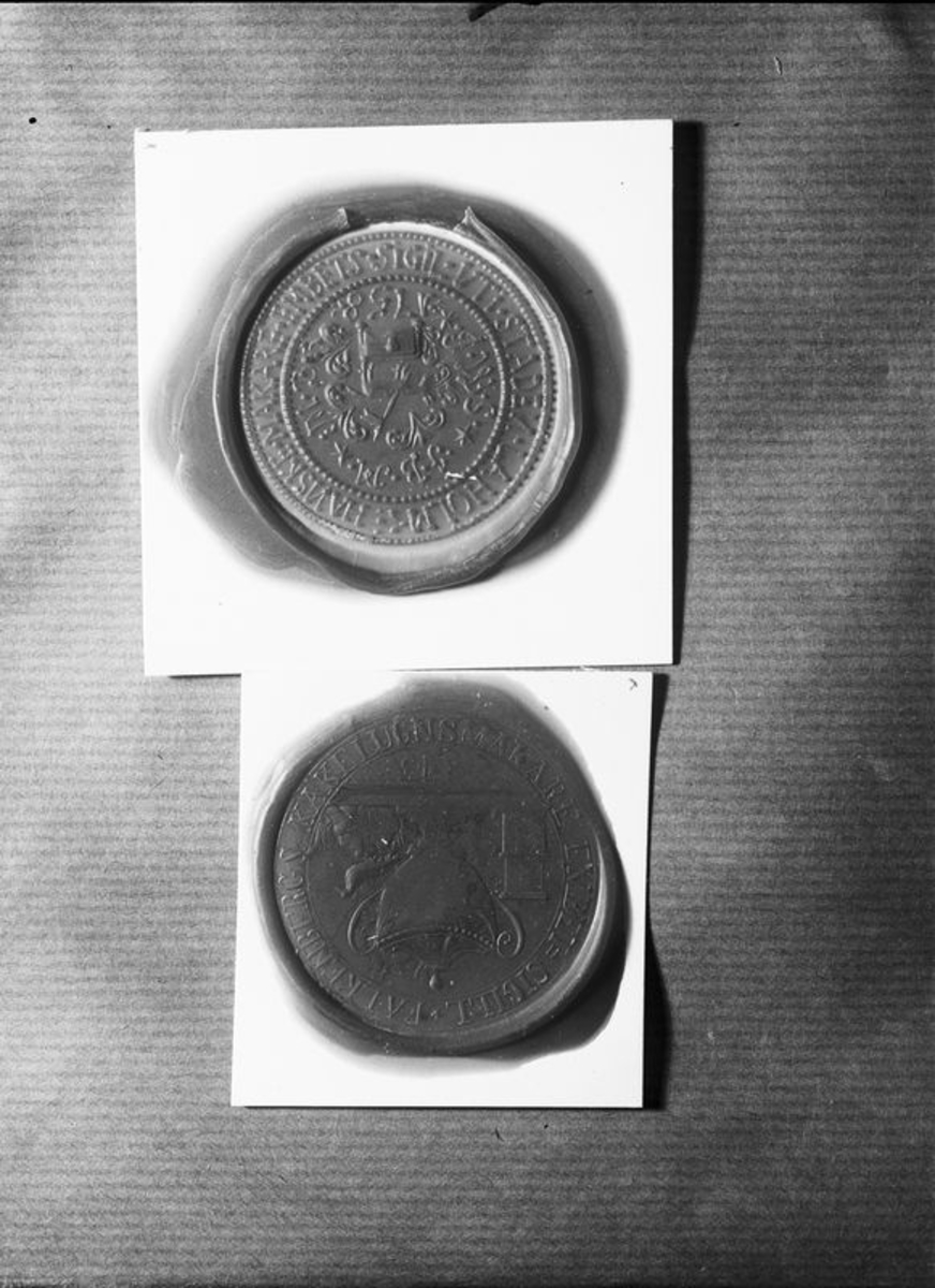 Sigill: Falkenberg kakelugnsmakareämbete/Laholm hanskmakareämbete.