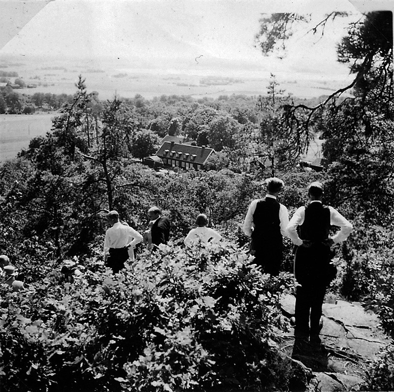 Västra Tunhem sn , Tunhems prästgård fr Hunneberg, P. Hagström 1950. Foto: Vänersborgs Museum